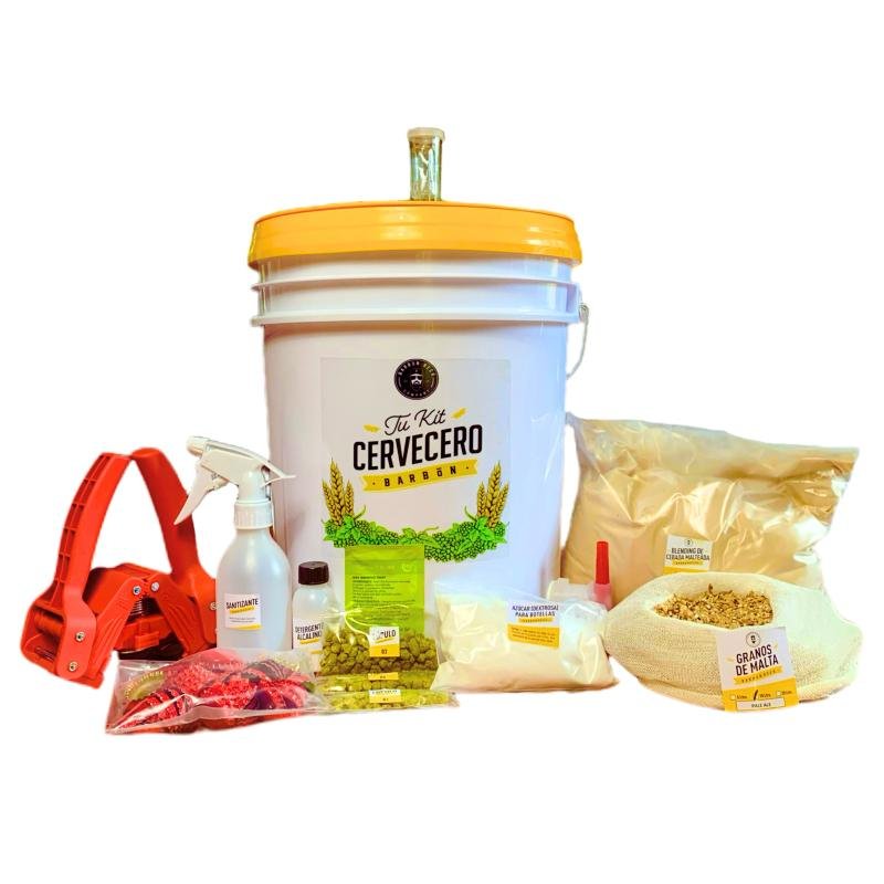 IMPORTANTE: Todos nuestros kit 20 litros llevan un fermentador Barbón de grado alimenticio, EXCLUSIVO PARA FERMENTAR CERVEZA, no es un balde multiuso que por lo general cierran mal. Es resistente, con tapa rosca que permite un cierre total logrando así una excelente fermentación, impreso con un diseño increíble, UNICO EN CHILE, creado por BARBON BEER